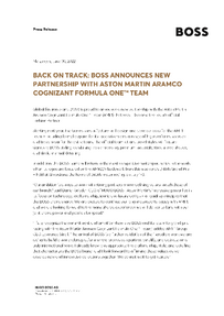 Global fashion brand BOSS is proud to announce a new partnership with the Aston Martin Aramco Cognizant Formula One™ Team (AMF1) that sees it become the team’s official Fashion Partner.