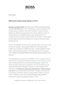 “With their innovative and engaging campaign, BOSS is striking just the right note with TikTok, inspiring our community in a genuine, joyful and positive way. BOSS' involvement and collaboration with TikTok has shown that our community has a strong desire to explore the fashion and luxury industry and to express their creativity in this area.”