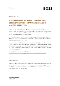 On Monday, March 21, BOSS offered Miami-local shoppers and tennis fans the opportunity for an immersive brand experience, on and off the court, with a tennis lesson followed by an in-store event at their Aventura retail location, hosted by world-renowned tennis player and BOSS Global Brand Ambassador, Matteo Berrettini.