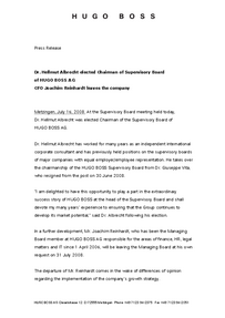 Dr. Hellmut Albrecht elected Chairman of Supervisory Board of HUGO BOSS AG / CFO Joachim Reinhardt leaves the company