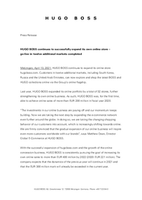 “The investments in our online business are paying off and our momentum keeps building. Now we are taking the next step by expanding the e-commerce network even further around the globe. In doing so, we are taking the changing shopping behavior of our customers into account, which is increasingly shifting towards online. We are firmly convinced that the gradual expansion of our online business will inspire even more customers worldwide with our brands”, says Matthew Dean, Director Global E-Commerce at HUGO BOSS.
