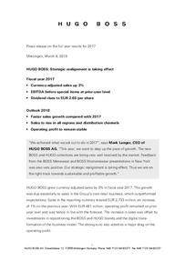 The Managing Board will discuss the financial results for fiscal year 2017 and the outlook for 2018 at today's annual press and analysts' conference. Further information is available at group.hugoboss.com. The annual report of HUGO BOSS
