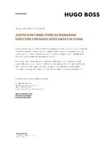 Judith Sun has started in October as Managing Director HUGO BOSS Greater China. In this role, she is responsible for leading the company's China business and implementing the brand's strategic vision locally, besides developing the company's own retail, digital and wholesale business further in this important market.