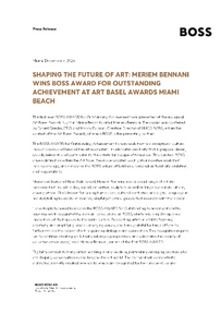 The first-ever BOSS AWARD for Outstanding Achievement was presented at the inaugural Art Basel Awards Night in Miami Beach to artist Meriem Bennani. The award was conferred by Daniel Grieder, CEO, and Marco Falcioni, Creative Director of HUGO BOSS, within the context of the Art Basel Awards, of which BOSS is the presenting partner.